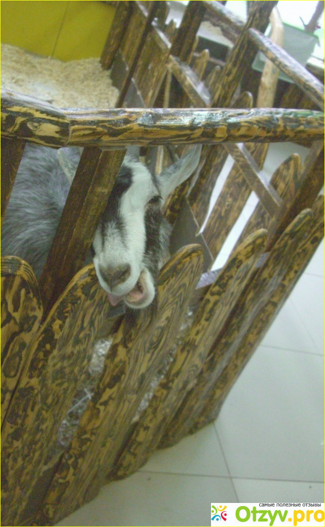 Самая активная в зоопарке - коза. Сейчас у нее маленький козленочек, который даже еще ни чего не ест кроме молока. Зато коза, как кормящая мать требует еду со всех. Так и провожает глазами каждую плошку.