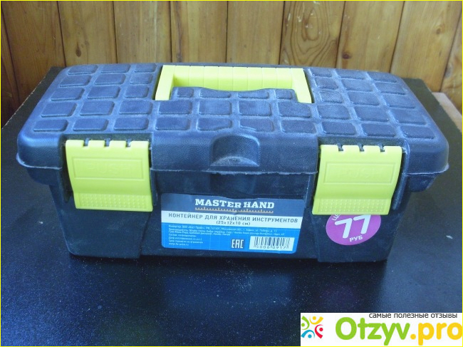 Не стоит серьёзному мастеру-умельцу использовать этот вид продукции! И хотя он вместительный, имеет ручку для переноски, а так же замки для фиксации крышки, на этом его преимущества заканчиваются. Далее о прискорбном: петли хрупкие и сразу же поотлетали. Пришлось мне прикручивать шурупами свои металлические, что весьма помогло.