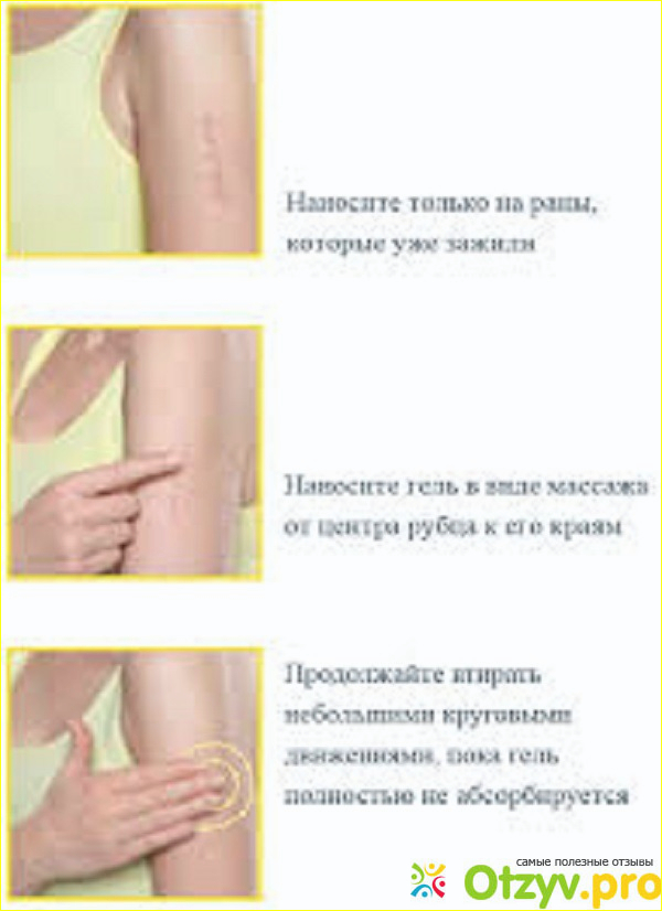 Для большей эффективности гель наносится а свежие, зажившие рубцы. Нельзя применять на раны, только после того как зажило, затянулось.