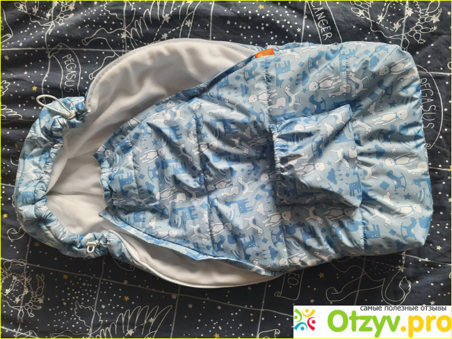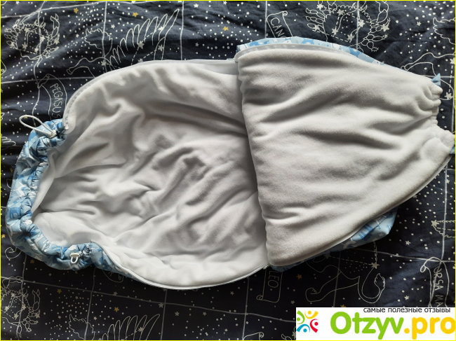 Внутри у конверта очень мягонький и тепленький флис, а внутри утеплитель синтепон 200 гр, я считаю отлично. Например, сегодня придя с прогулки мой кроха тепленький, хотя на нем одет был хб костюмчик и все, а на улице уже довольно холодно и влажно.