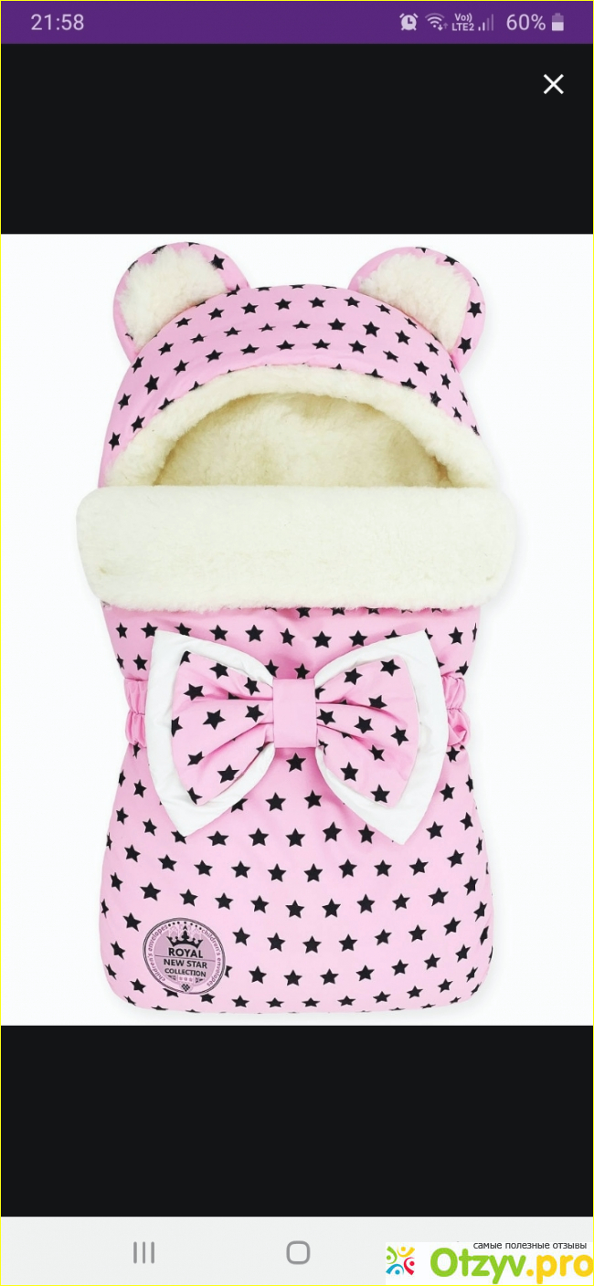 По этому, данная модель, меховой конверт подошёл очень хорошо. Красивый розовый цвет с чёрными звёздочками, белая меховая опушка смотрелись очень эффектно. Принцессе было очень тепло и комфортно. Поясок в виде банта на резинке и липучках, плотно прилегают. Внутри мех толстый, мягкий. Две молнии по бокам, надёжно прикрывают. Это именно то, что мы искали.