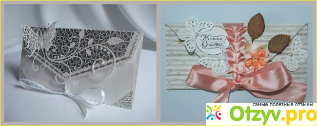 Вроде как, проявление дурного тона. Деньги принято дарить в конвертах. Когда-то покупали самые обычные канцелярские конверты, потом стали печатать специальные в типографии, но сейчас людей этим не удивить. Интересная картина: дешевый конверт и приличная сумма внутри. Многих такое сочетание не устраивает. Другое дело шикарный конверт с кружевами или другими броскими элементами. И сделан он будет непременно вручную.