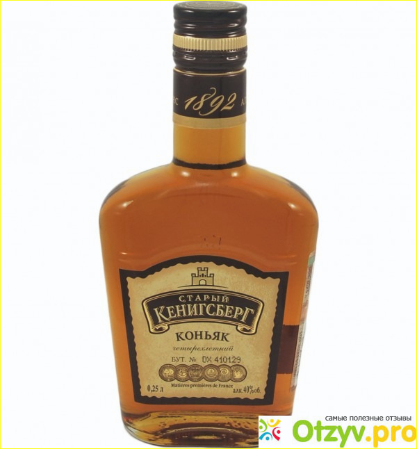 Коньяк «Старый Кёнигсберг» это купаж французских коньячных спиртов с добавлением воды, сахарного сиропа и колера.