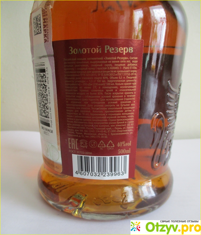 Исходя из вышесказанного, коньяк Золотой резерв, как бюджетную марку с неплохим соотношением цена - качество можно смело рекомендовать.
