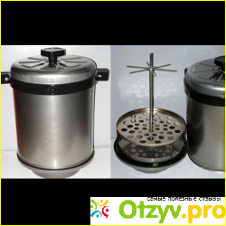 Шесть крючков могут изменить положение вещей (продукты в подвешенном состоянии). Последняя крышка, закрывающая всю конструкцию, оснащенная ручками и винтом для плотного прилегания и повышения герметичности (есть асбестовый шнур).