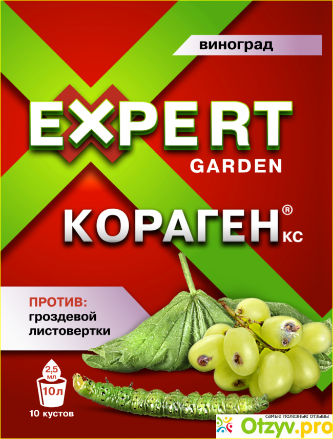 Хочу поделиться отзывом о средстве Кораген КС Expert Garden. Купили в этом году, когда искали средство для защиты винограда от листовертки. Очень понравились сильные стороны препарата: полная защита от вредителей (уничтожает их на всех стадиях развития, начиная даже с яйцекладок) и отсутствие привыкания у вредителей.