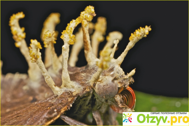 Затем они начнут расти внутри насекомого и превратятся в мицелий, который продолжает поглощать насекомое изнутри. Остатки насекомых и грибов веками собирали, высушивали и использовали в традиционной китайской медицине для лечения усталости, болезней, заболеваний почек и низкого полового влечения. Это черный гриб в форме лезвия, встречающийся в основном на больших высотах тибетского плато в Китае, который паразитирует на гусеницах моли. Осенью грибковая мицелий заражает гусеницу, которая убивает ее к началу лета следующего года, освобождая споры от плодоносящего тела (строма). Добавки и продукты, содержащие экстракт кордицепса, становятся все более популярными из-за их многочисленных предполагаемых преимуществ для здоровья.