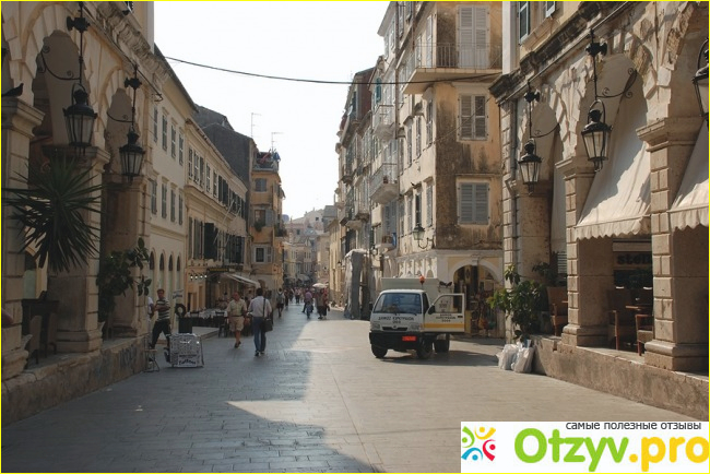 По Керкире интересно погулять с утра, когда город еще окончательно не проснулся, только открываются магазины и наводится порядок на улицах. Удивило очень то, что здесь вручную моют улицы. С наступлением дня в городе становится все более людно и он наполняется множеством туристов, особенно в курортное время. Хочется еще сказать, что Керкира является своеобразным торговым центром, где можно купить много чего интересного – разных сумок, кошельков, атрибутов одежды и конечно же – сувениров.