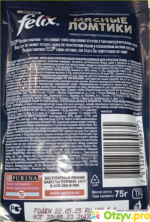 Состав не идеальный, но выглядит при этом корм корм для кошек FELIX Мясные ломтики говядина достаточно аппетитно и пахнет тоже неплохо, если сравнивать с кормами в этой же ценовой категории.