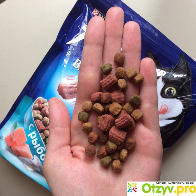 Запах для сухого корма характерный, данный корм содержит рыбу, что отчётливо слышно. Во время употребления этого корма моя кошка чувствовала себя хорошо, работа желудочно – кошачьего тракта была в норме, стул в порядке. На её активность Феликс никак не повлиял, все вполне приемлемо. В целом, если не придираться к составу, этот корм может подойти для ежедневного кормления питомца. Но все же мы все ищем идеальный вариант, поэтому данный корм не совсем подходит под мои параметры.