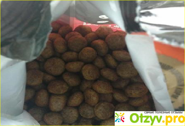 Гранулы корма сами по себе достаточно большие. превышают по размерам более известные аналоги. По началу пёс ел не очень охотно, видимо принюхивался. На второй день есть стал более охотно. заметно что корм понравился. На пищеварении как-то пагубно не сказалось. Шерсть тоже в норме - блеск шикарный. От себя хотелось бы порекомендовать данный корм для покупки, жаль упаковка достаточно маленькая. Пускай корм не премиум класса. но главное собака довольна.