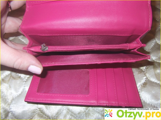 Изнутри кошелек очень прочный и имеет ярко розовый дизайн, что очень радует взгляд.