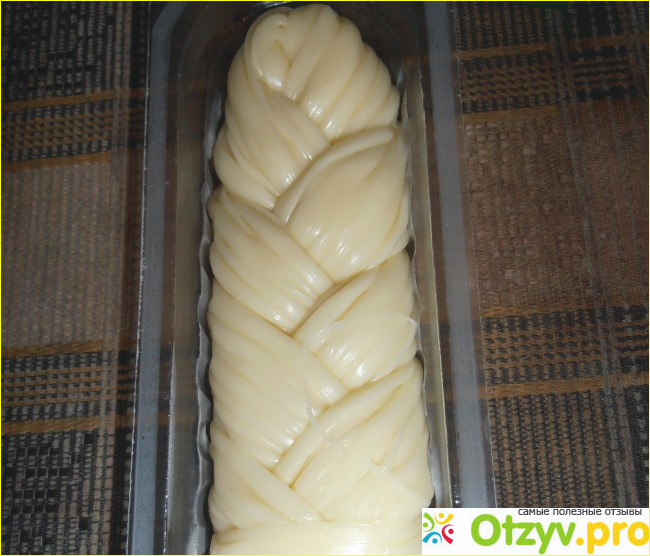 Косичка на вид очень симпатичная и аккуратненькая, правда в этот раз слишком спрессованная получилась, и как я обычно люблю делить косичку на "волоски", я так обычно называю составляющие косичку шнурочки) Делилась косичка не очень хорошо, по крайней мере на шнурочки мне ее не удалось поделить, пришлось на кусочки делить, обычно такого не бывает с этим сыром, наерное что-то в производстве напартачили, надеюсь больше такого не будет.