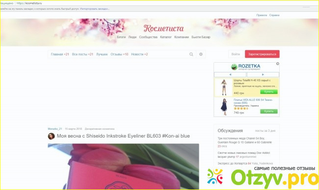 Это сайт посвященный разнообразнейшей косметике, разнообразнийшим брендам, есть здесь и каталог с косметикой как декоративной так и косметическими средствами по уходу. Есть блоги девушек которые часто выкладывают интересные посты с разнообразной тематикой посвященной косметическим средствам. Так же бывают посты в которых просто спрашивают совета по определенным вопросам и проблемам и на эти вопросы отвечают со всей искренностью.