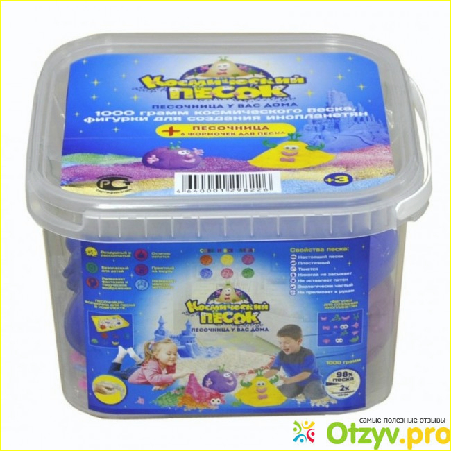 Поэтому, Космический песок - отличная идея. Он по настоящему чист, в отличии от уличного, хотя пихать его в рот не стоит. Космический песок отлично держит форму, и поэтому лепить из него куличики с помощью формочек - отдельное удовольствие. И взрослому этот песок очень приятно брать в руки, хочется сразу чего то слепить, или просто помять в руках.