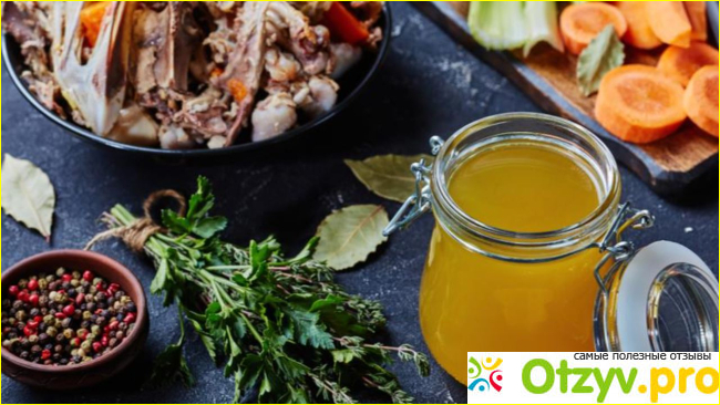 Желатин получается тогда, когда суставы, насыщенные коллагеном, долго варятся. Также там содержится глицин и пролин, которые имеют важное значение для восстановления соединительных тканей. Если бульон пить на регулярной основе, то он поможет улучшить состояние прослойки, которая находится в наших суставах. В результате, вы можете защитить себя от развития артрозов.