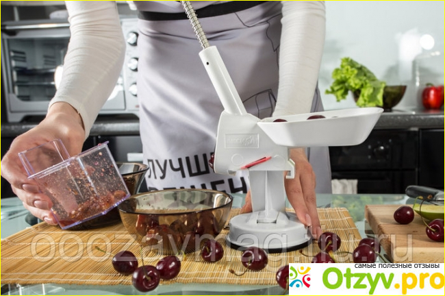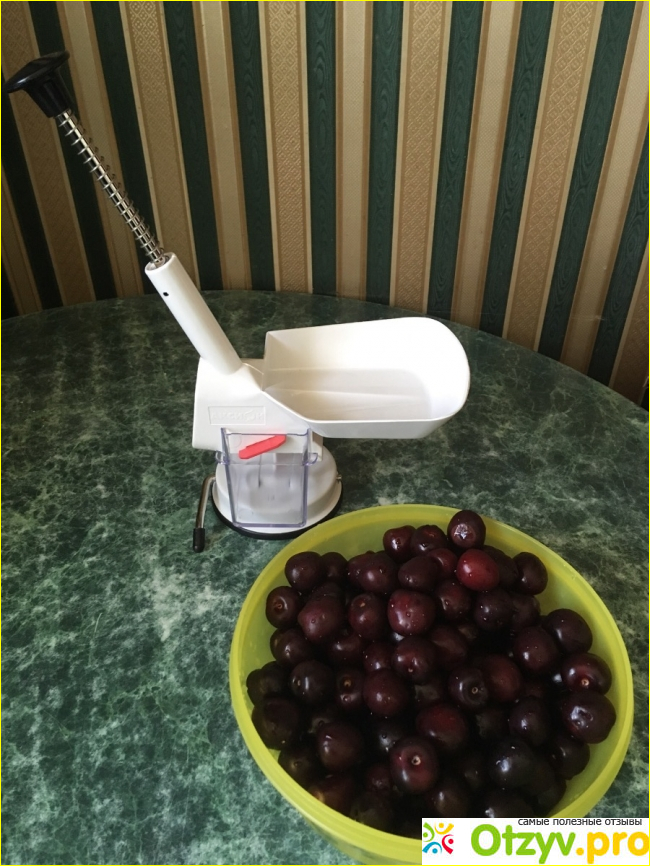 Корпус прибора выглядит достаточно надежно. Но если учитывать то, что данная модель обойдется вам в 1200 рублей, то цена для такого простого аппарата конечно же сильно завышена. Красная цена для этой модели не должна превышать 500 рублей. Для сбора готовых плодов уже без косточек можно использовать любую емкость, которая есть у вас дома.