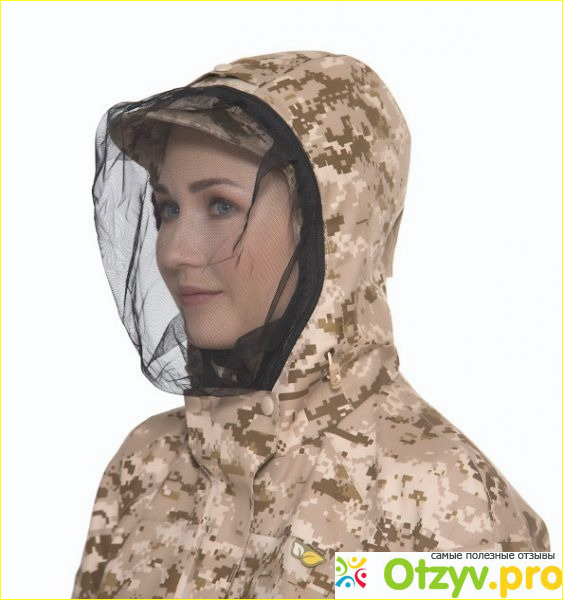 Костюм противоэнцефалитный с накомарником, для охоты. Смесовые ткани. Материал фотопринт – 65% полиэстер – 35% хлопок. Универсальный костюм для охотников и рыболовов и туристов. Куртка удлиненная на резинке с капюшоном и москитной сеткой. Себестоимость 2,2 тыс. руб.