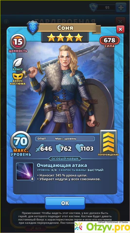 Про саму Соню я уже писала. Теперь хотелось бы добавить некоторую информацию о её костюме. В наряде герой получает класс Друид.