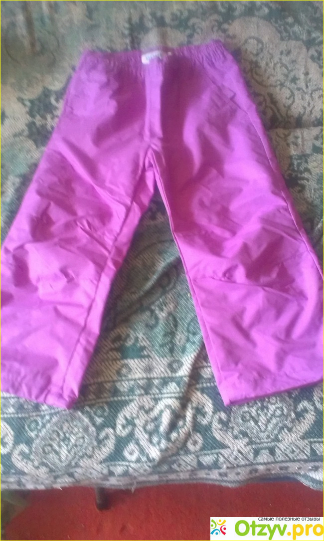 Штаны однотонные , насыщенно сиреневого цвета. Пояс штанин на резинке, можно регулировать под талию ребёнка. Так же имеются два карманчика на липучке.