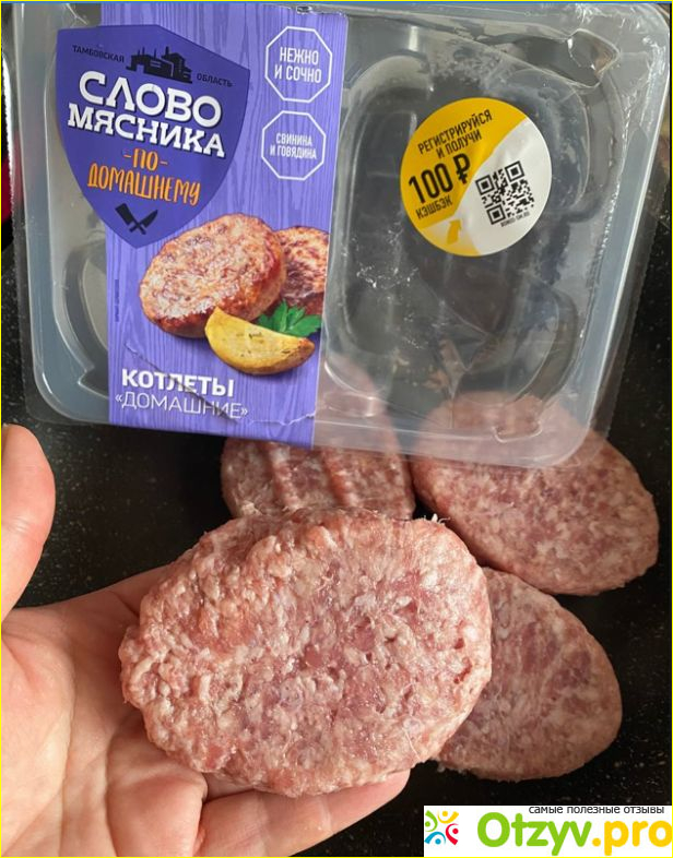 Иногда нет времени самостоятельно крутить фарш в мясорубке для приготовления котлет. На этот случай я покупаю домашние котлеты от фирмы "Слово мясника". Они изготавливаются из натурального мяса свинины и говядины.