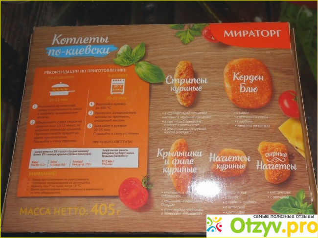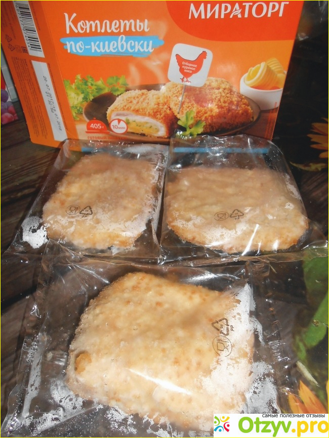 Среди ингредиентов присутствуют и белок соевый, и дрожжи, и загустители, и ароматизаторы, и красители. Ознакомившись с этим составом, задаешься вопросом - а так ли полезны эти котлеты? Скорее всего, нет. Лучше не лениться, а покупать на рынке мясо, в т. ч. курицы, и изготавливать наггетсы, котлеты и прочие мясные блюда самостоятельно. Увы, у нас на это не всегда есть время, да и желание, набаловали нас производители полуфабрикатов, вот мы и несем деньги в магазины, чтобы поменьше времени тратить на готовку. Согласна, иногда этого времени действительно нет, так что можно изредка покупать мироторговскую продукцию, в том числе эти Котлеты по-киевски. И неважно, что они совсем не похожи на классические котлеты по-киевски внешне, вкусовые качества неплохие.