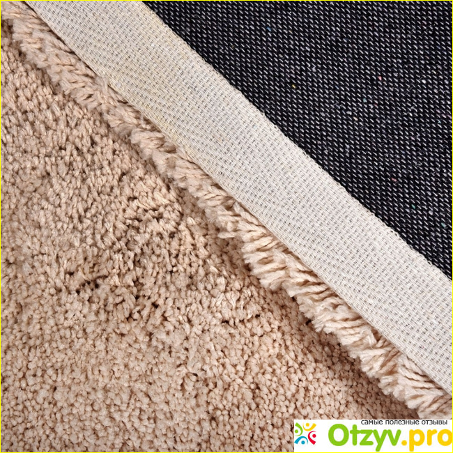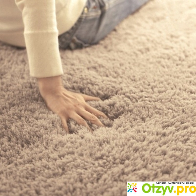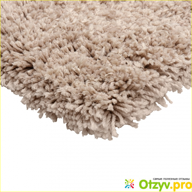 Ворсинки не выпадают: видимо, по краям они как-то закреплены. Высота ворса – 25 мм. Это настоящая шиншилла: ковёр мягкий, нежный, по ламинату не скользит. На нём можно сидеть, лежать – просто одно удовольствие. Ткань типа флиса, при прикосновении чувствуется тепло. Это стопроцентный полиэстер.