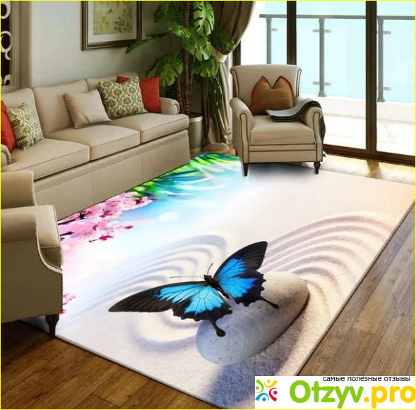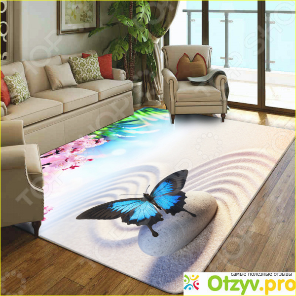 Контрастные цвета крыльев этого насекомого хоть и выполнены в ярком цвете, однако они не являются тем, что диктует стиль интерьеру. Не важно какой дизайн комнаты и в каких цветах она выполнена — такой ковер в любом интерьере будет смотреться хорошо.