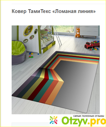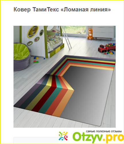 Ковер ТамиТекс Ломаная линия выполнен из достаточно плотных материалов, об этом даже говорит высота ковра — больше 1 сантиметра.