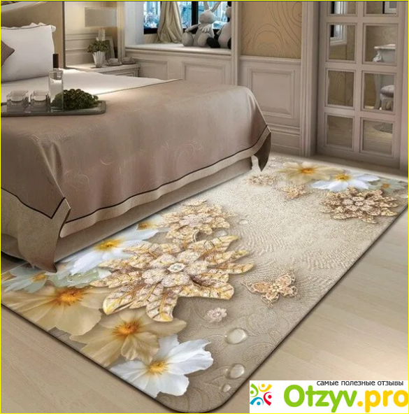 Бежевый ковер, купленный нами в интернет магазине, имеет цветочный рисунок на спокойном фоне цвета беж. Но я сама удивляюсь сама себе — что это за цвет такой, который так ярко мне напоминает морской песок? Может быть, именно отсюда у меня и рождается ощущение безмятежности и полноценного отдыха, когда я смотрю на это изделие?