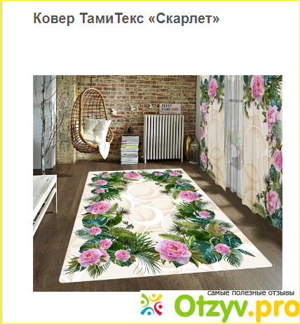Ковер ТамиТекс Скарлет — это находка для любой комнаты. Такой домашний текстиль сумеет украсить как гостиную, так и спальню. Да и в женский кабинет, наверное, можно постелить такой ковер, уверена, он там будет смотреться отлично.