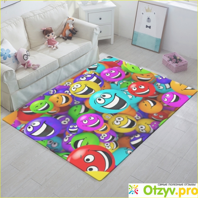 Данное изделие является очень красивым, ярким и стильным элементом декора, который сможет стать отличным дополнением, так как позволит освежить комнату, создать атмосферу необходимого уюта, придаст тепло и отличное настроение. Этот ковер трёхслойный и имеет толщину в 1,2 сантиметра. Внутренняя основа данного изделия изготовлена из материала вспененного, а благодаря поверхности ковра, которая на ощупь невероятно приятная, напоминает велюр, позволяет придавать особого комфорта и приятные ощущения.