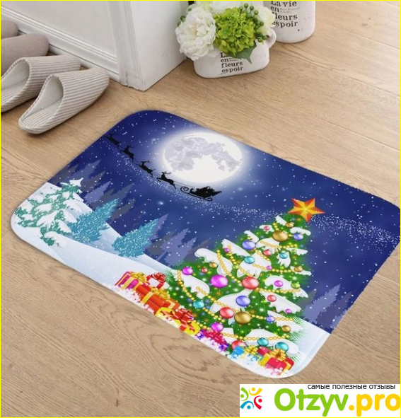 Коврик понравился своей яркостью — он так красив, что поначалу мы с мужем просто нем огли на него налюбоваться. Супруг даже предложил заказать второй такой же, чтобы его поставить в нашу комнату. Нам же тоже хочется сделать в своей спальне новогодний дизайн.