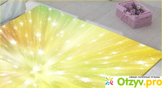 Ковер имеет очень приятную на ощупь поверхность, на которой приятно даже отдыхать. Сверху изделие велюровое и идет в сочетании с внутренней мягкой основой, которая представляет собой материал вспененный, все это создает комфорт во время применения. Если такое изделие будет в детской комнате, то ребенку точно будет приятно играть на нем и лежать. Благодаря специальной основе ковра, препятствуется его скольжение не зависимо от поверхности пола, что снижает риски падений. Изделие имеет повышенную износостойкость, что продлевает срок службы изделия. Материал, который лежит в основе изготовления изделия, позволяет равномерно распределять нагрузку ног, позволяет снимать напряжение с ног и усталость.