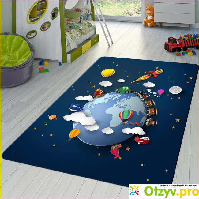 Яркий, стильный, развивающий и в то же самое время смешной — вот то, что представляет собой ковер тамитекс «земной шар».