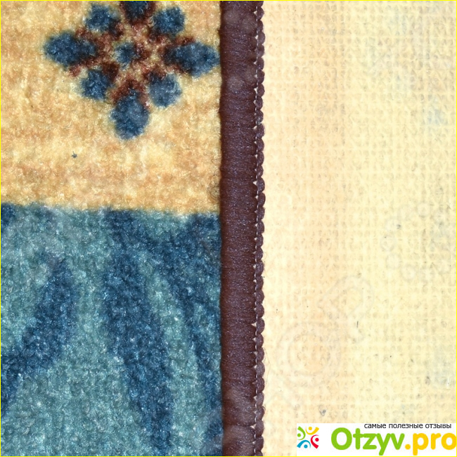 Сами цвета на ковре не яркие, а они очень приятные и приглушенные. Основные цвета которые используются на ковре - это синий, молочный и коричневый. При этом расцветка не маркая. Поэтому напольное покрытие вам не придется часто мыть. Оно долго будет выглядеть как новое.