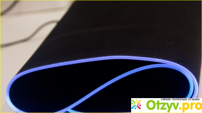 Коврик имеет длину 770 мм и ширину 300 мм, толщина его при этом составляет всего 3 мм, но такие размеры являются отличными для комфортной работы. Сверху коврик имеет тканевое покрытие черного цвета. Слева имеется блок питания, а также управления всей подсветкой. Это осуществляется при помощи одной кнопки управления, которая позволяет переключать режимы подсветки. Всего коврик имеет 12 режимов, но 7 из них это RGB-подсветка, которая дает возможность человеку выбирать тот стиль, который максимально ему близок и комфортен, чтобы можно было удобно работать. На торце у блока управления имеется разъем для питания. На коврике очень хорошо прошиты края, сверху и идет подсветка RGB.