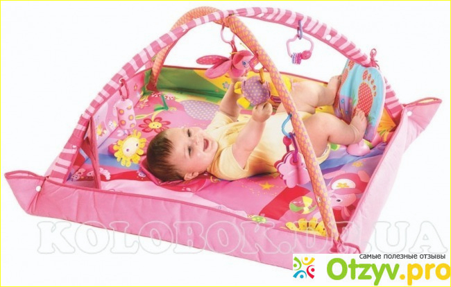 Я и представить не могла насколько эта вещь окажется нам полезной. Малышу очень нравилось лежать на нем и рассматривать игрушки, чуть позже проявилось желание ухватить что-либо висящее над его головой. Это очень полезная вещь для ращваития мелкой моторики, ребёнку необходимо ощущать и познавать различные предметы, а на этом ковре таких уйма,5 погремушек различных по форме, плюс сами штаны, на которывх висят игрушки(они сделаны из мягкой, скользкой ткани, внутри чстр-то типа поролона, но более плотного). Ковёр не боится влаги(моё мнение, это важно, так как маленькие дети часто писиются), его можно стирать каждый день, правда от частых стирок он истончается и уже не так хорошо впитывает. К слову, нам сейчас 9 месяцев, а ковёр до сих пор в ходу, мы также любим подлежать на нем и по играться(недолго), также мы оборудовали его дополнительными игрушками, чтобы было разнообразнее и веселее. Некоторые погремушки так и остались любимыми по сей день, и очень выручают, когда сын капризничает.