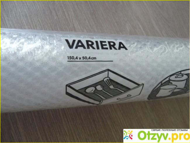 В ящик с посудой он у меня попал первым делом. Коврик продается в рулоне, его размер 150 см на 50.