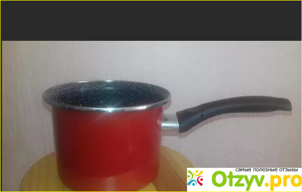Смотрится симпатично, несомненно, такая посуда впишется в интерьер совершенно любой кухни. Красноватый цвет позволяет этому ковшу выглядеть ярко, но в то же самое время благородно — оттенок красного не кричащий, а тихий, спокойный, чуть приглушенный.