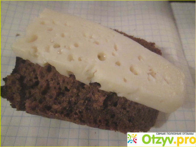 Кусочек сыра на черном хлебе, мне нравится такое сочетание - и вкусно и сытно и полезно!