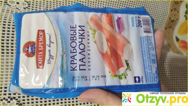 Крабовые палочки в чистом виде я не очень люблю, а вот салатику они придают интересный вкус, и моя семья любит такие салаты, поэтому беру иногда такие палочки. Из недорогих самые вкусные крабовые палочки охлаждённые от Санта бремор.
