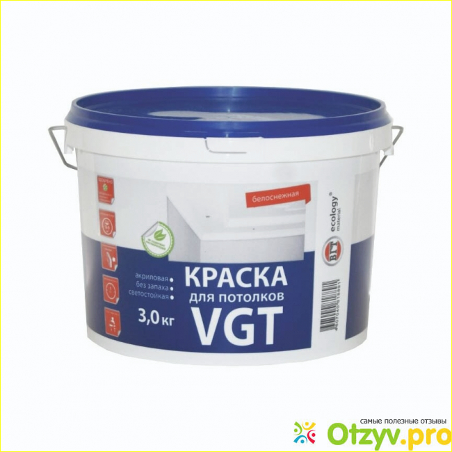 Вот к таким, кстати говоря моим любимым, краскам относится акриловая матовая краска VGT. Очень хорошая цена и простота в работе. Недавно красил потолок в предбаннике. Старый, обшитый еще в начале 2000 х годов ДВП.