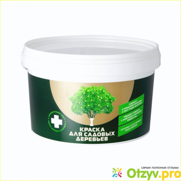 Краска для садовых деревьев защищает ствол от насекомых, от ожогов, от спор грибов- патогенных, от перепадов температуры.