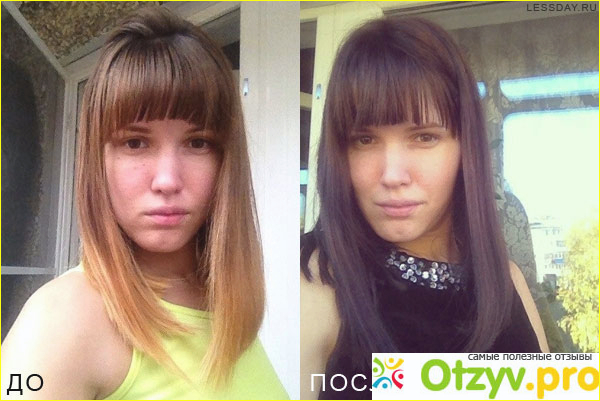 Процедура окрашивания. приобретаете данное средство в любом масс-маркете или косметическом магазине. Проведите тест на аллергическую реакцию следую рекомендациям в инструкции. Надеваем перчатки. Смешиваем красящее вещество и проявитель. Наносим все содержимое на длину, при этом равномерно распределяя все руками, как правило кисточек в комплекте нет. Смойте краску спустя время без шампуня, закрепите эффект кондиционером. Как правило тон будет отличатся от того, что изображено на упаковке. Во-первых, это может случится из-за состояния ваших волос (поврежденные, пористые или наоборот, не разу не окрашенные - в таком случае краска возьмется от части). Во-вторых, от наличия седины и количества краски, потраченной на одну процедуру. Многие девушки делает состав на два раза им хватает.