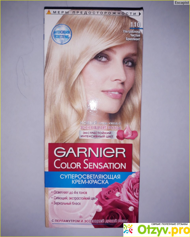Брала 110 Garnier Color Naturals суперосветляющую (на 4 тона), (после предварительного обесцвечивания порошком). К сожалению, получился зеленовато-синеватый оттенок. Краска прилично подсушила мои и без того поврежденные волосы, хорошо что не выпали.