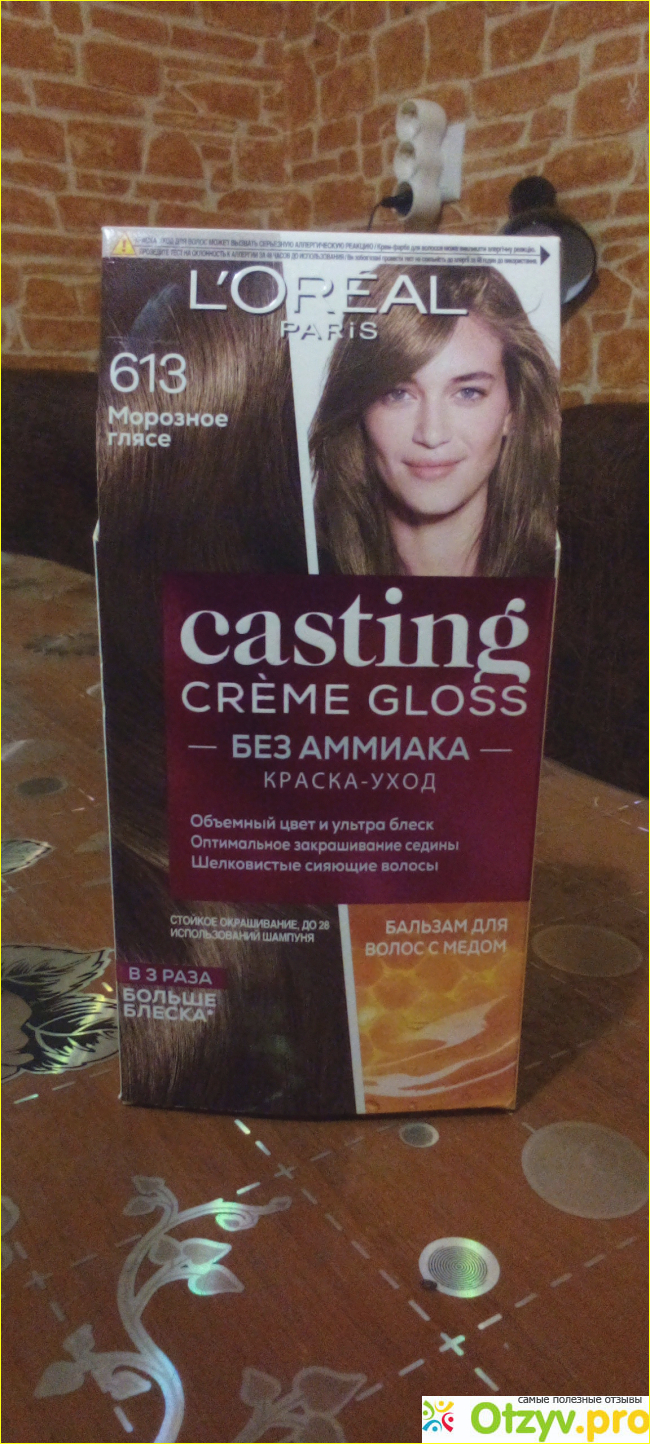 В этот раз я решила попробовать без аммиачную краску Loreal paris, оттенок 613 морозное глясе. Краска без аммиака, а значит окрашивание бережное, но такая краска к сожалению быстро смывается. Открыв упаковку мы видим обычный комплек, красящий крем, проявляющее молочко, бальзам, перчатки и инструкция. Прочитав инструкцию, я обратила внимание что краска наносится на мокрые волосы, обычно краску других брендов я наносила на сухие волосы. Мой цвет волос до окрашивания сильно отдавал в рыжину, а свои волосы темно нусого цвета.