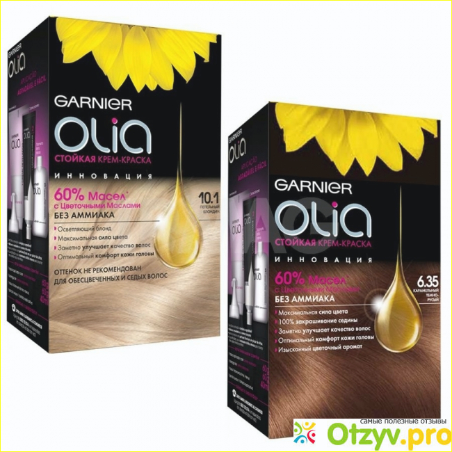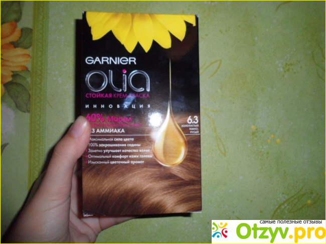 Стала искать по отзывам женщин, какая краска без аммиака действительно хорошая и в результате дает цвет, максимально приближенный к обещанному. Нашла целую статью про Garnier «Olia». Конечно, статья была рекламной, но отзывы об этой краске тоже самые хорошие и обнадеживающие. И как попробовала я ей покраситься один раз, так и стала данная краска мои фаворитом!