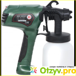 Только когда работа была завершена (еще два дня обходила с кисточкой какие-то места около окон, дверей и т. д.), пошла во всемирную паутину, чтобы ознакомиться с таким хорошим инструментом для краски, но наткнулась там только в основном на негативные отзывы - видимо инструмент в руках профессионала и работает великолепно. Конечно, они не заморачиваются - сломается, им выдадут другой, но у меня работал великолепно, хотя шумел сильно, сильно.