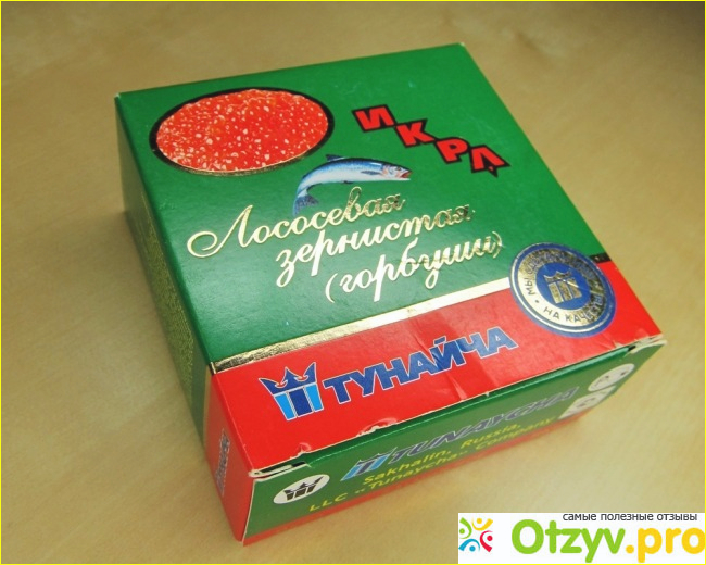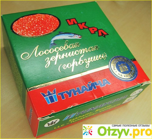Проверив несколько раз, мы убедились в безупречности качества этой красной икры из горбуши, которую выпускают на Дальнем Востоке - в селе Охотское Корсаковского района Сахалинской области. Да, так далеко. Но ведь известно, чем ближе к морю и рыбе располагается само производственное предприятие, тем выше вероятность того, что продукт не успеет испортиться и удастся добиться высокого качества. Думается, что Компания "Тунайча" уделяет много внимания и соблюдению технологии своего производства. Хотя оно не такое уж и сложно на первый взгляд. В состав входит сама икра горбуши, соль и растительное масло, немного глицерина и консервантов Е200 и Е211. Видимо, совсем без консервантов обойтись не удалось. Зато хранить её можно в течение года с момента фасовки по банкам, дата которой указывается на крышке.